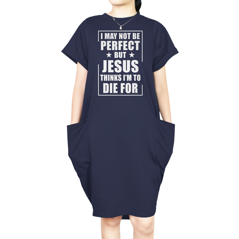 I'm Not Perfect Short Sleeve Loose Fit Pocket Dress
